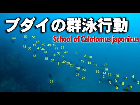 ブダイは伊豆半島ならごく普通に見られる魚だ。普通過ぎてダイバーは話題にもしないが、見かけるときは大概の場合1固体、2個体とか。周辺に複数個体いたとしても、統率のある群れ行動をしているようには見えない。ただ、春先に15センチ程度の若いブダイが5~10個体で群れていて、ダイバーを避ける動作がまさに「群れ」ぽいということはあるので、若いころは群れてるのかな?とは思ってた。